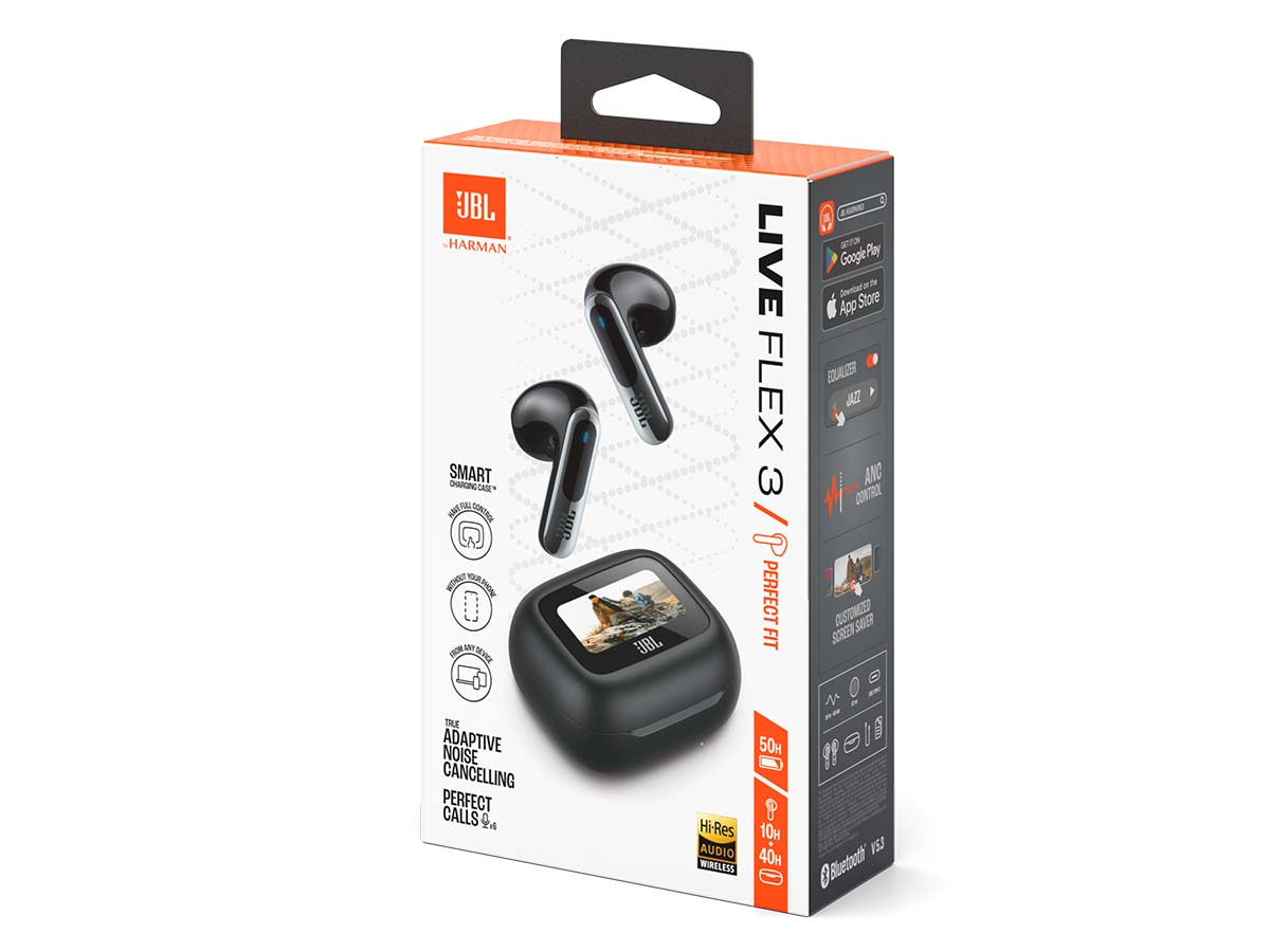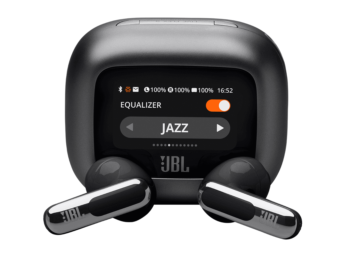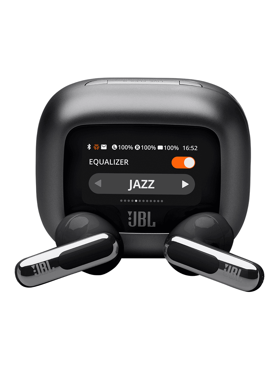 You can customise many aspects of your JBL Live Flex 3 earbuds with the 1.45-inch touchscreen display on the Smart Charging Case™. The display gives you full control of your sound on any compatible devices – laptop, TV, smartphones or tablets – without needing to access the JBL App on your smartphone.