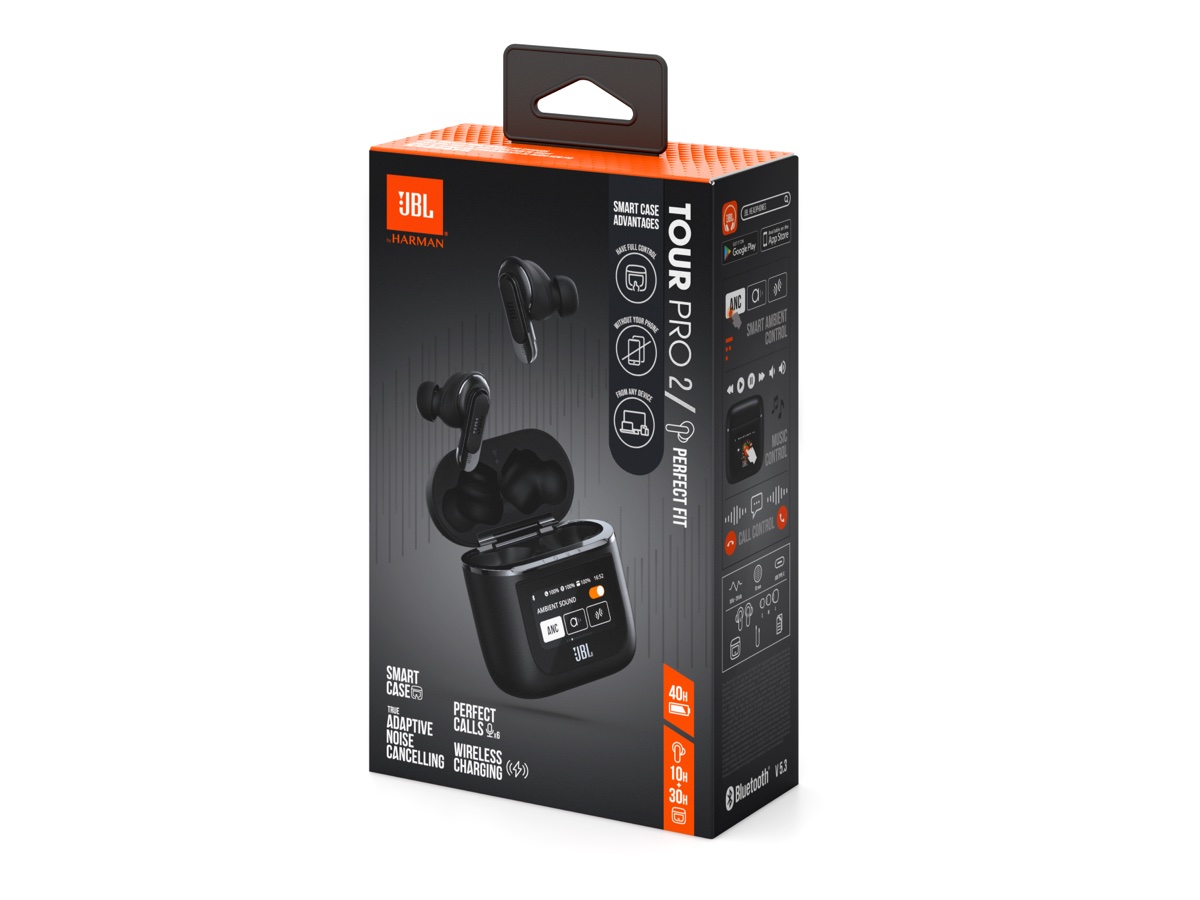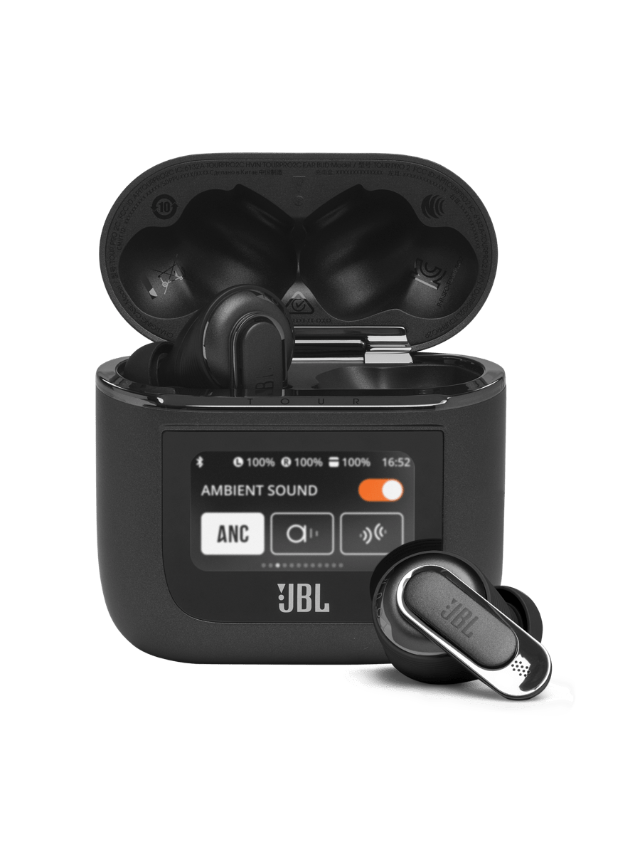 Control the earbuds’ settings, manage calls and playback, control your audio setting and battery level and set your alarm without taking out your phone, through the screen of the charging case. Enjoy a truly seamless experience thanks to the JBL Tour Pro 2 unique smart charging case without using your phone or the JBL Headphones App.