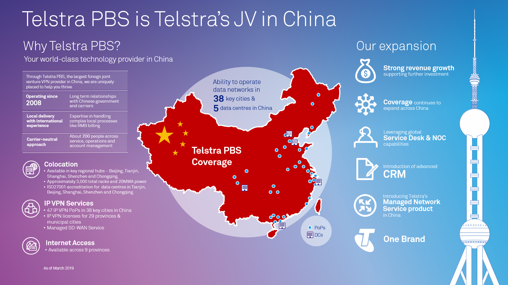 We have 600+owned, managed, and partner-operated data centres. This represents the largest integrated data centre footprint in Asia Pacific region, with sites in a number of markets, including China, Hong Kong, Singapore and the United States.