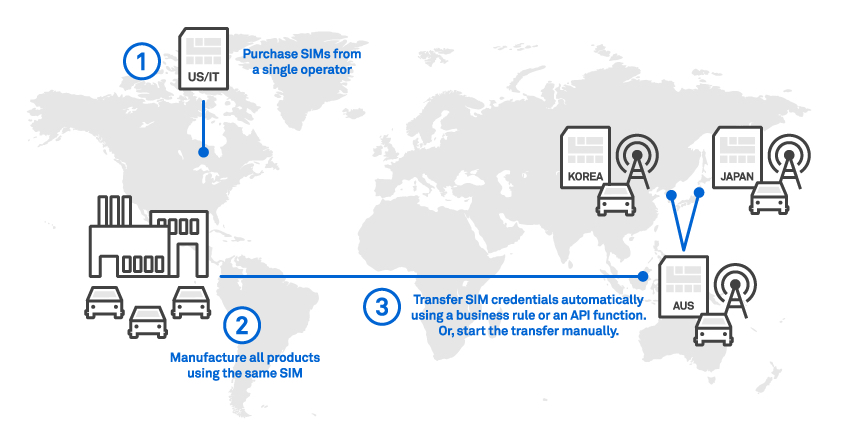 Once the device is deployed the eSIM either localises with a local carrier network or roams.