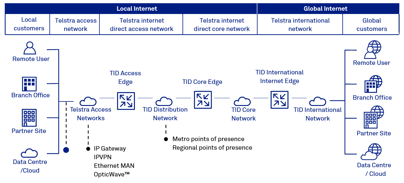 Service assurance targets for TID is Business Plus 24 x 7 with 12-hour Urban restoration target. Enhanced SLA’s can be purchased according to your business requirements.
