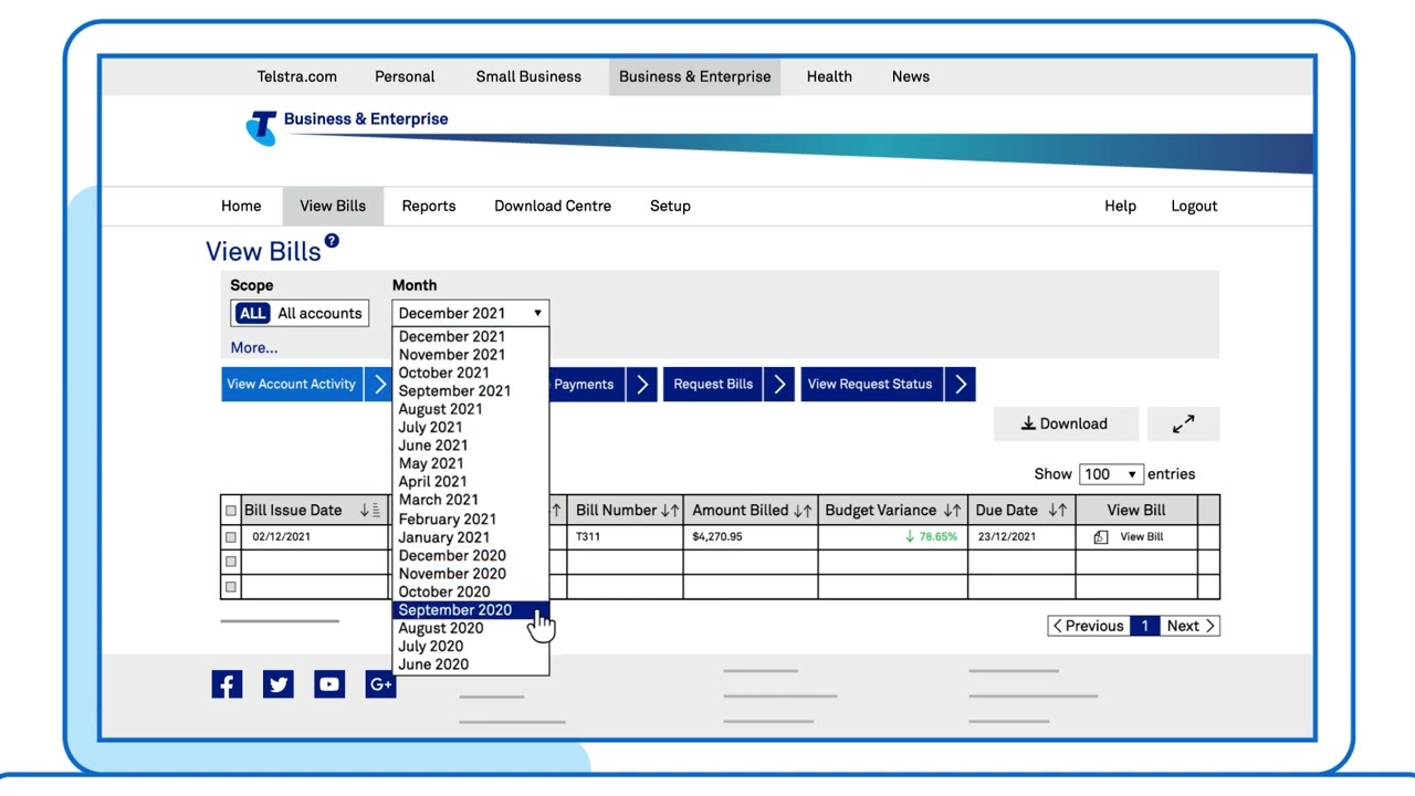 Note that invoices starting with 7000 can only be downloaded from T Connect currently. There’s a quick link to Telstra Connect from the T Analyst dashboard.
