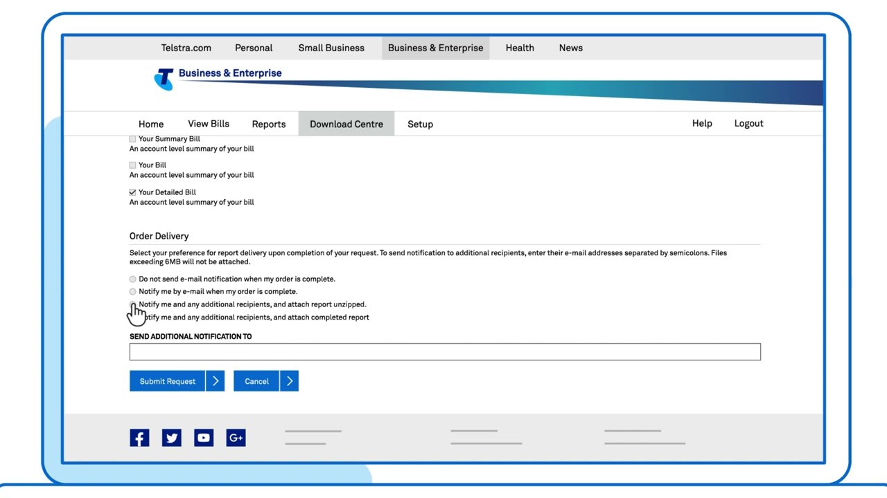 Under Email notification, choose your preferences. You can add other email recipients here. Then Submit request.