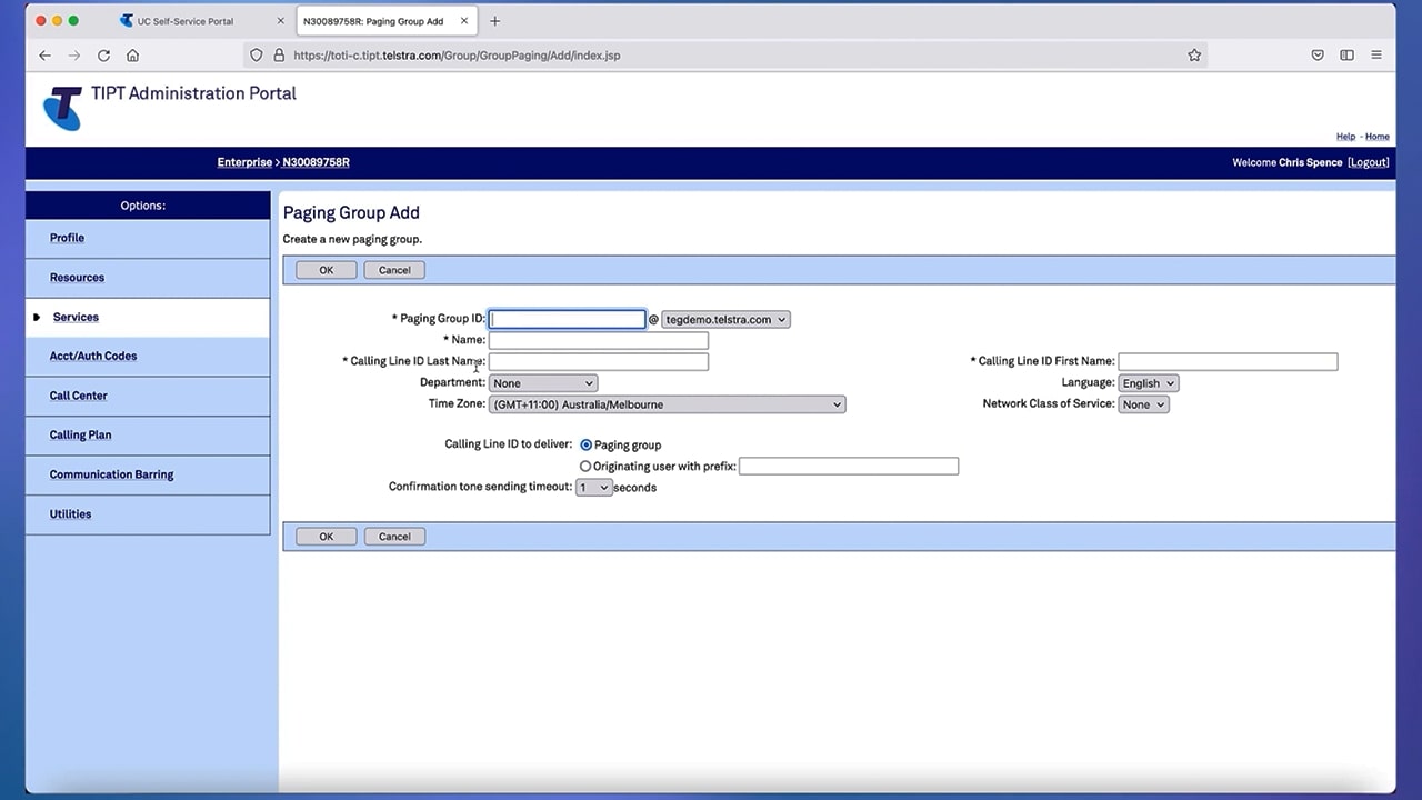 [ON SCREEN: Screen recording of Chris demonstrating how to set up group paging on the TIPT Administration Portal]