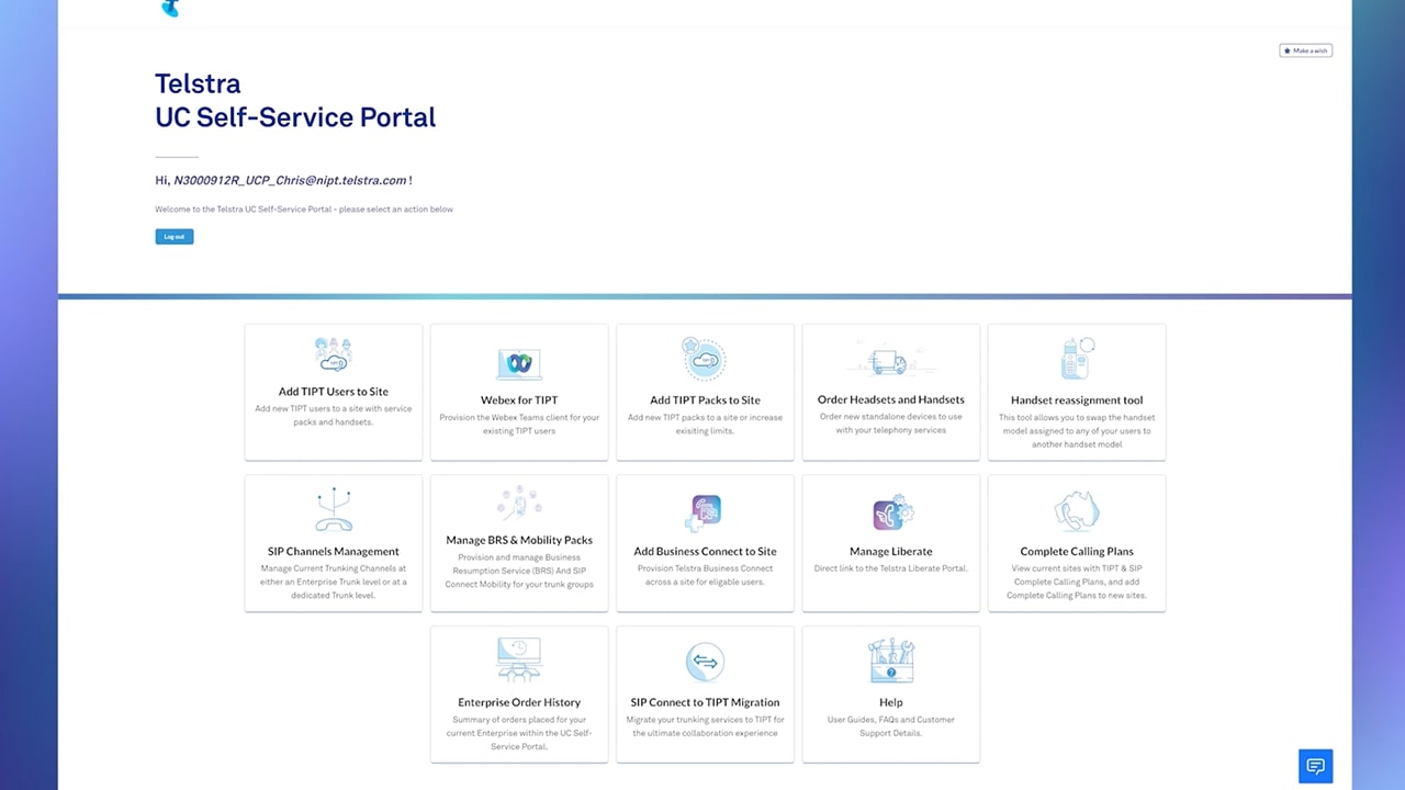 TOBY: Now if I need to do anything specific, we've got the Telstra admin portal or the TAP, that’s what we called it. So your customer group administrators will jump in there and they'll be doing more detailed work, be something simple like setting up speed dial. There are some more sophisticated things that you can do in there as well.