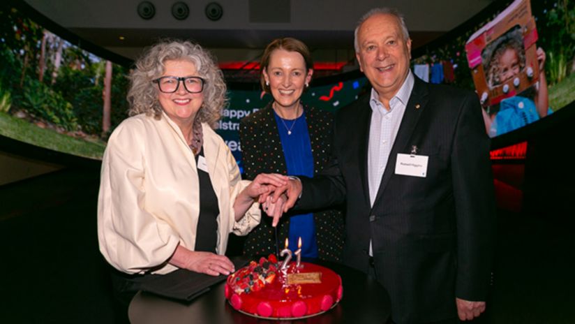 Left to right: Jackie Coates (Telstra Foundation CEO), Vicki Brady (Telstra CEO) and Russell Higgins (Chairman Telstra Foundation Board).