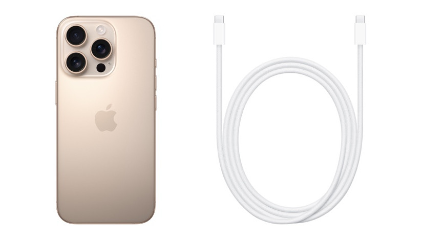 L-R: iPhone 17 Pro in Cosmic Orange and USB-C Charge Cable.