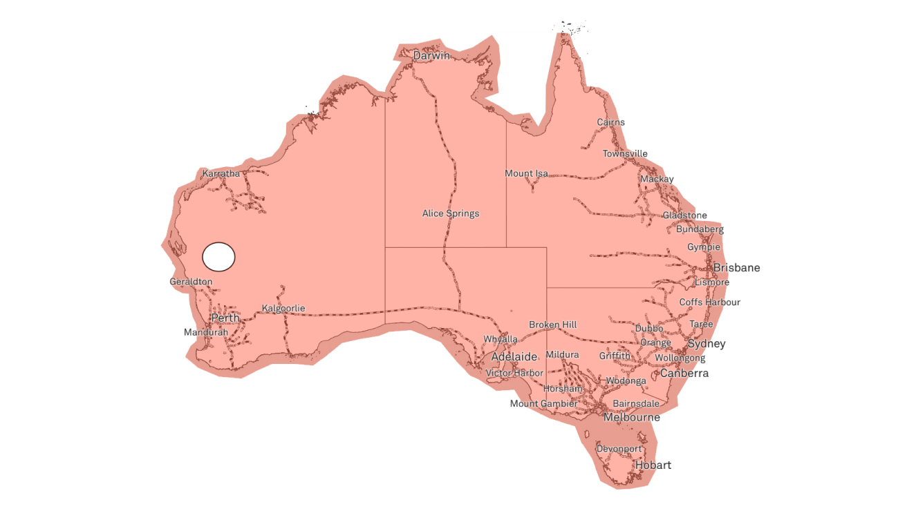 The satellite network will extend beyond the range of our mobile network to most outdoor areas on mainland Australia and Tasmania, excluding the Australian Radio Quiet Zone in Western Australia and remote offshore territories and islands of Australia.
