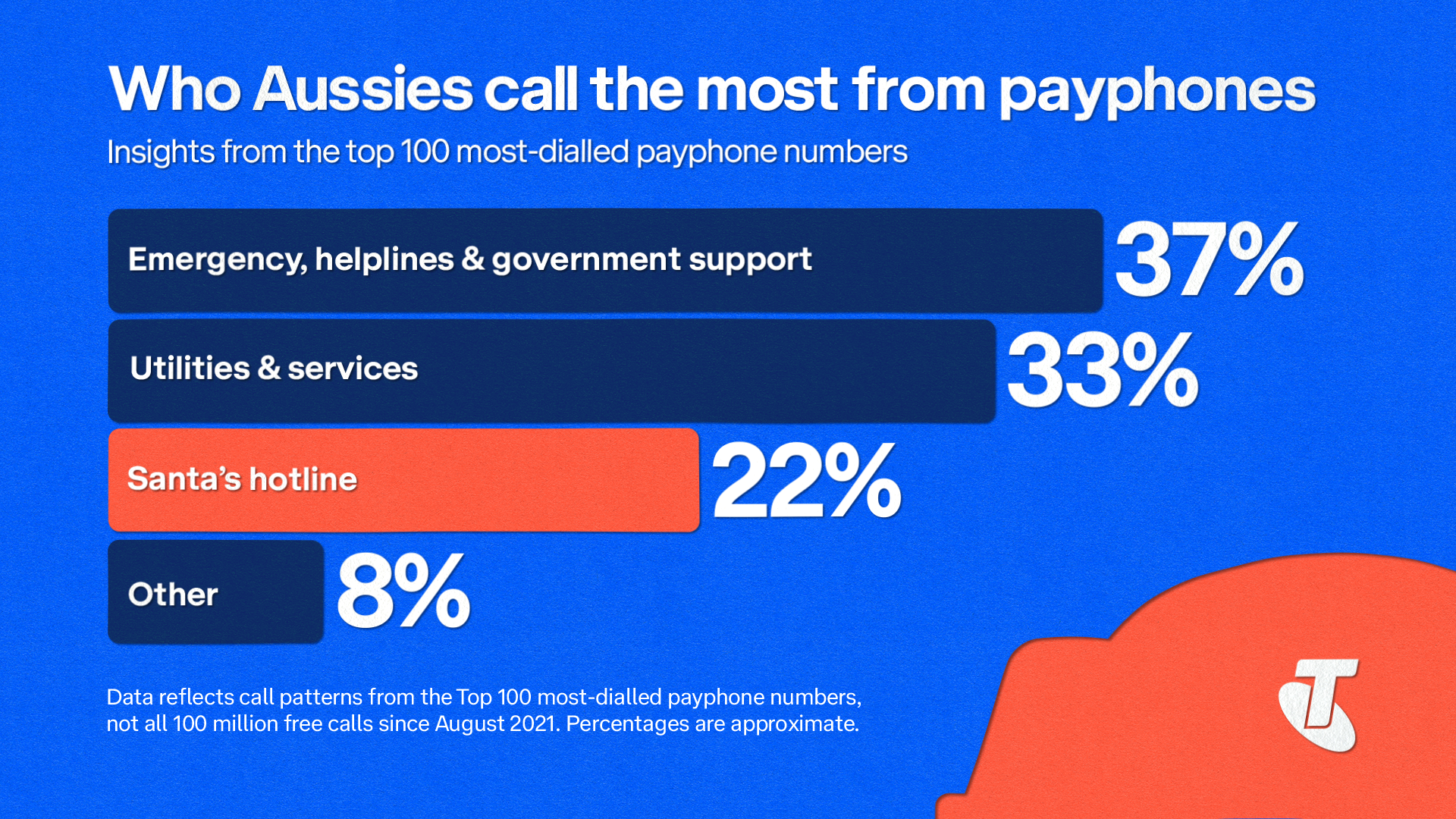 While most payphone calls are made in moments of need – connecting people to essential services, emergency support or family – one festive favourite stands out: Santa’s hotline. Nearly two million of Australia’s 100 million free calls have been to Santa’s workshop, making #HOHOHO (#464646) the single most dialled number on our payphone network.
