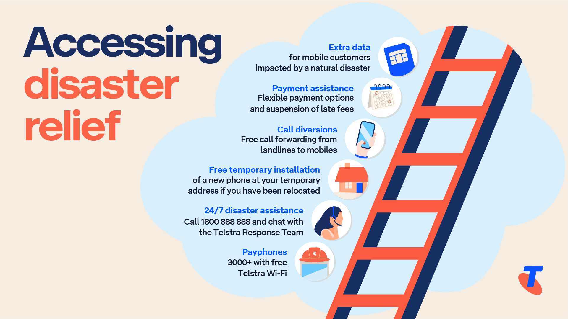 If cellular network signal is down during a disaster, you can still use your mobile phone to make and receive calls and text messages, provided it supports Wi-Fi Calling. Wi-Fi Calling provides basic voice-calling capability on compatible devices when you’re connected to a supported Wi-Fi network and can’t connect to the Telstra Mobile Network.