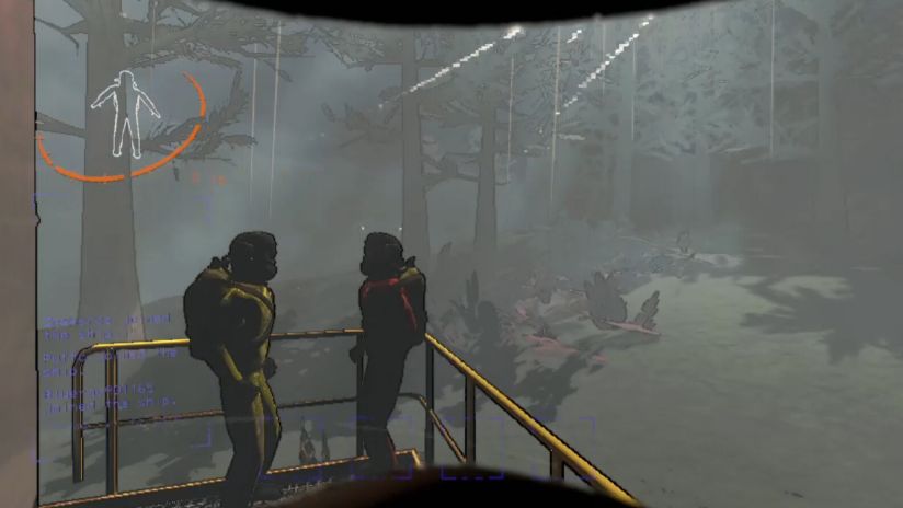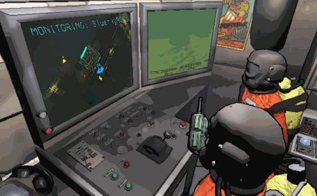 The person on the ship can use the built-in radar guidance system to follow their crewmates around the facility. The radar will allow you to spot enemies for them even in dark rooms, and radio them when you spot a threat.