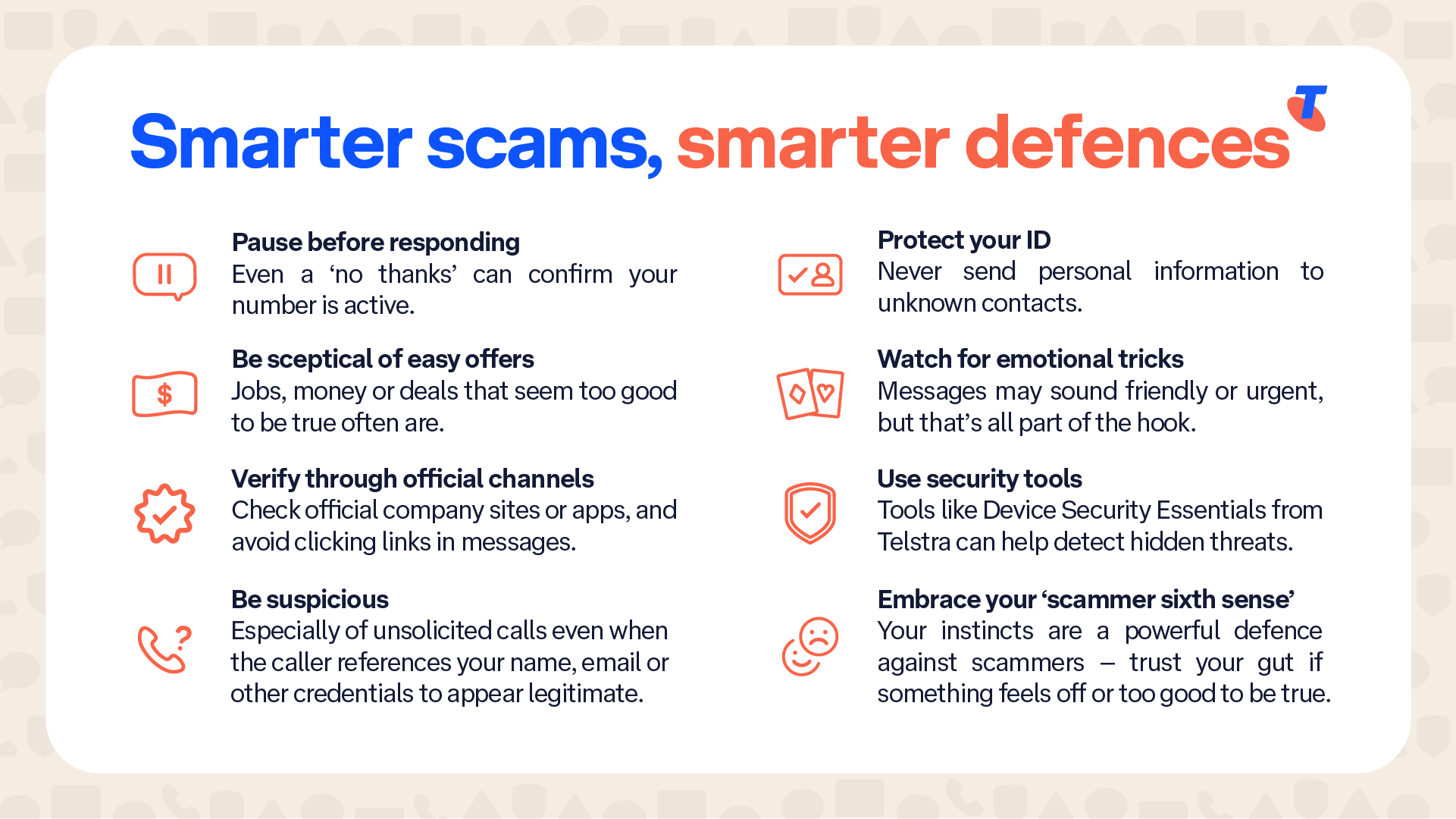 Scammers are evolving—but so are we. With smarter tools, sharper instincts, and a national commitment to staying informed, Australians are better equipped than ever to stay safe. At Telstra, we’re continuing to invest in technologies that protect our customers and help keep the digital world a safer place for everyone.