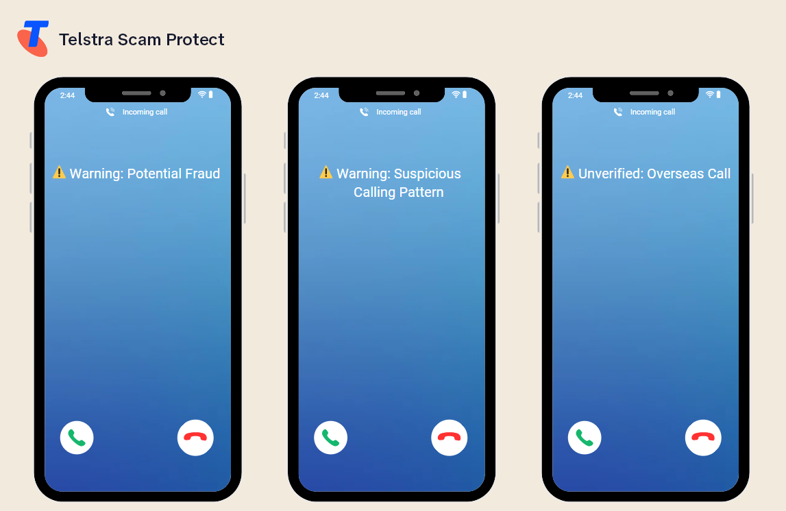 That’s why we’ve recently launched Telstra Scam Protect: a new feature that warns you when an incoming call might be suss, prompting you to reconsider answering.