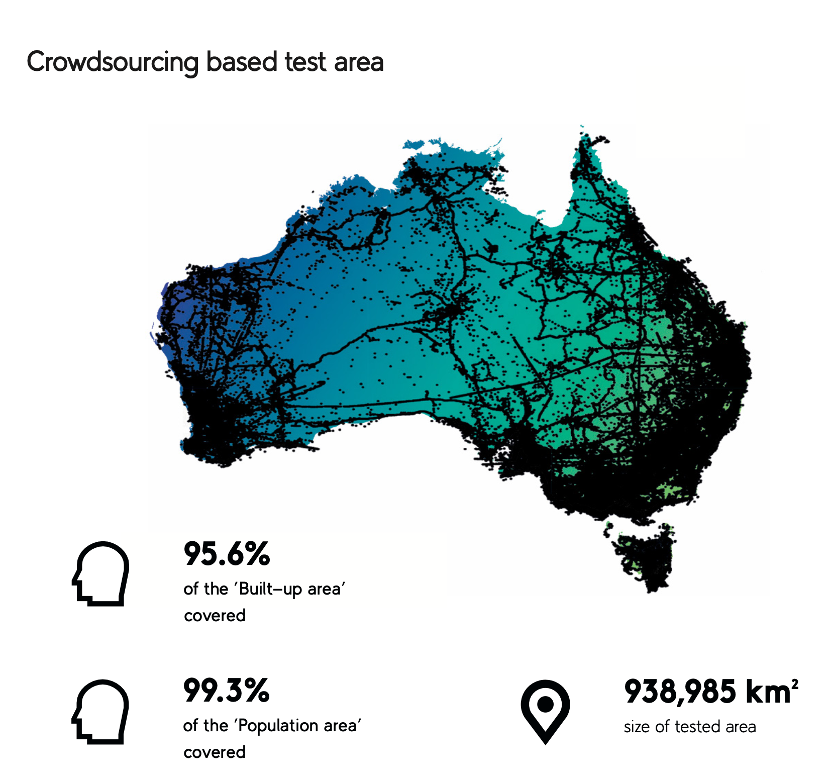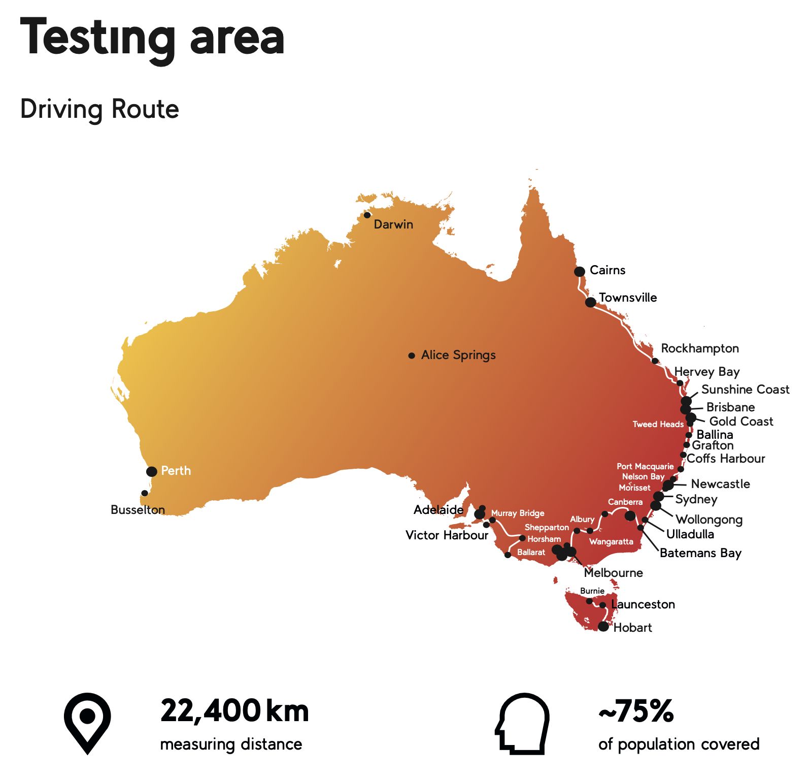 Their extensive drive testing was well spread geographically across major cities and smaller towns and connecting highways, capturing data from areas where around 75% of the Australian population reside.