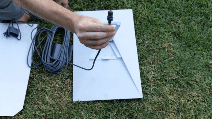 1. Connect the Starlink dish with the Starlink modem via the long ethernet cable