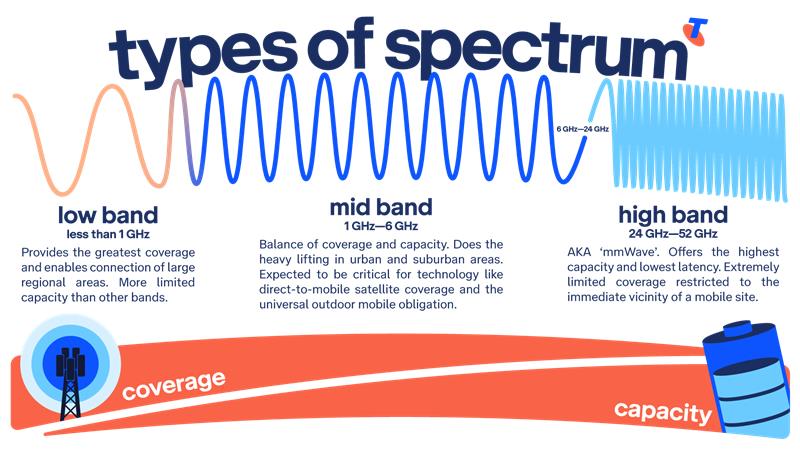 Low-band spectrum (below 1 GHz) travels long distances and penetrates buildings well, making it ideal for wide-area and indoor coverage - especially in regional and remote Australia.