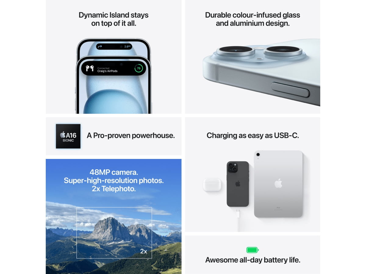 This iPhone 15 also has a range of leading accessibility features. View accessibility features.