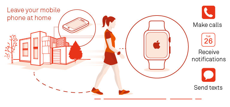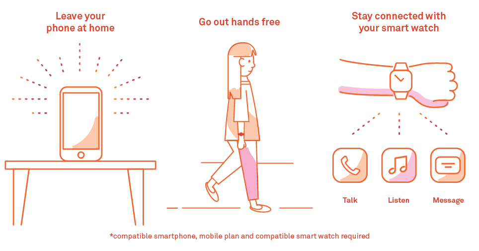 Your smart watch connects to the mobile network with more coverage in more places.