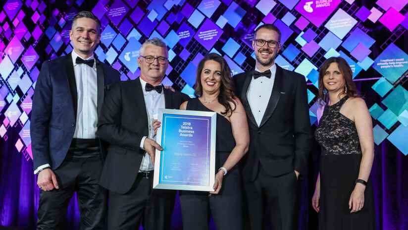 David Whittaker and the Manly Spirits Co. Team at the 2018 Telstra Best of Business Awards.